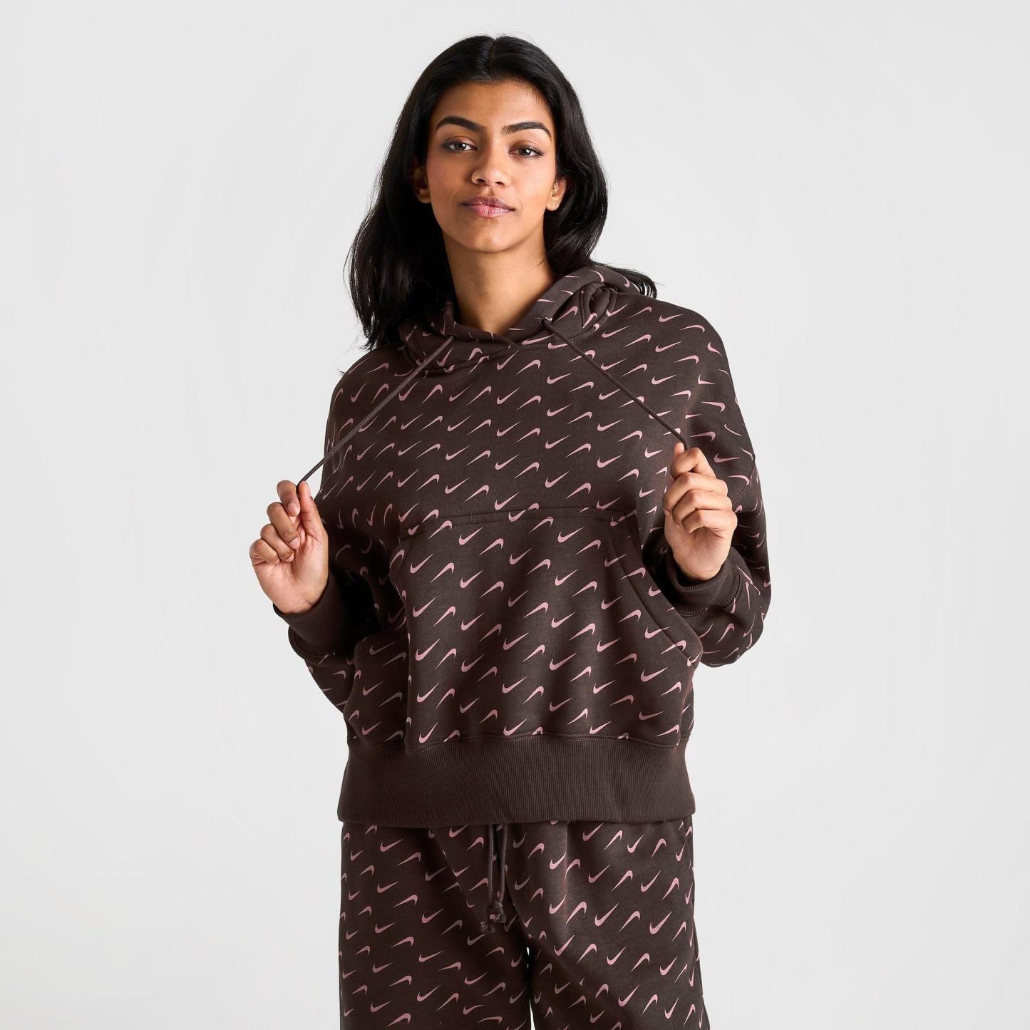 Freshen up your athleisure attire with the unbelievably cozy Women's Nike Sportswear Phoenix Fleece Over-Oversized All-over Print Pullover Hoodie. Crafted from cozy and warm midweight brushed fleece with a drop-shoulder design that delivers the roomiest oversized fit Nike has to offer, this premium pullover is a soon-to-be Swoosh staple. An all-over Swoosh print provides the finishing touch to your luxe laidback look.