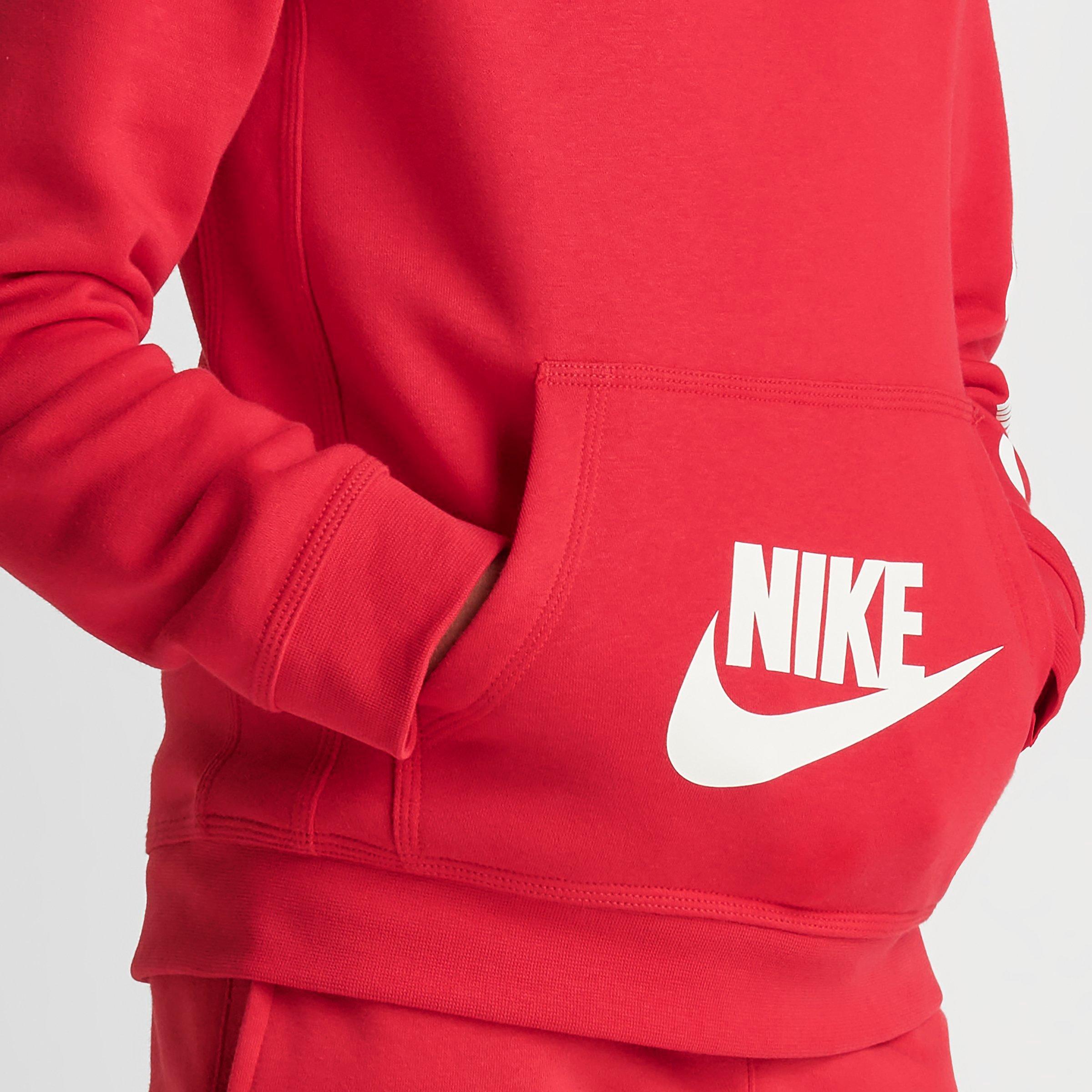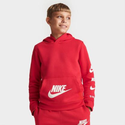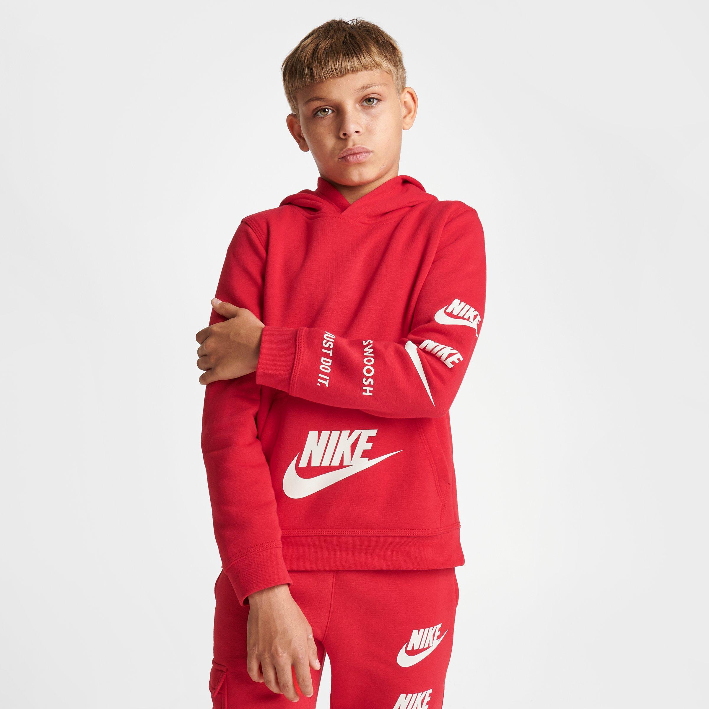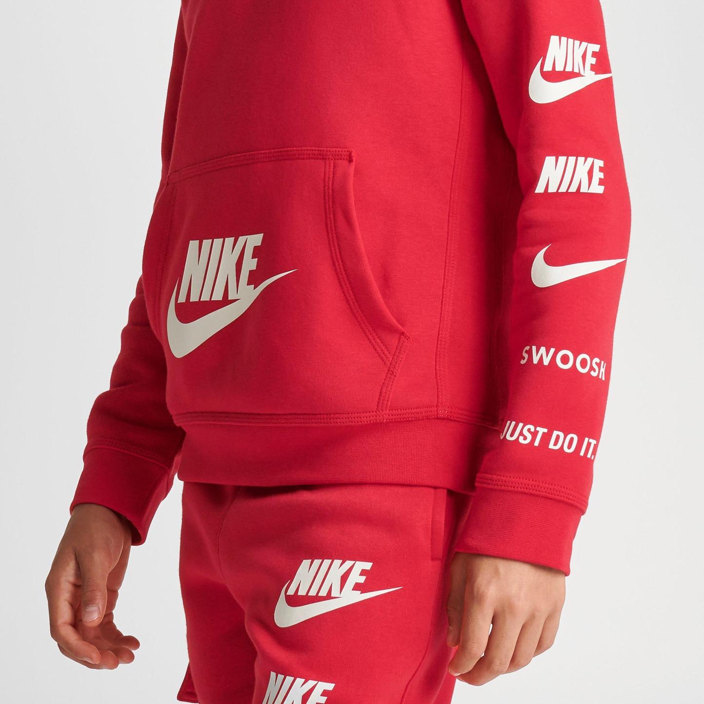 Show your love for Nike off when you wear the Boys' Nike SI Pullover Hoodie. It's covered in tons of Nike logos and is made with comfortable fleece material.