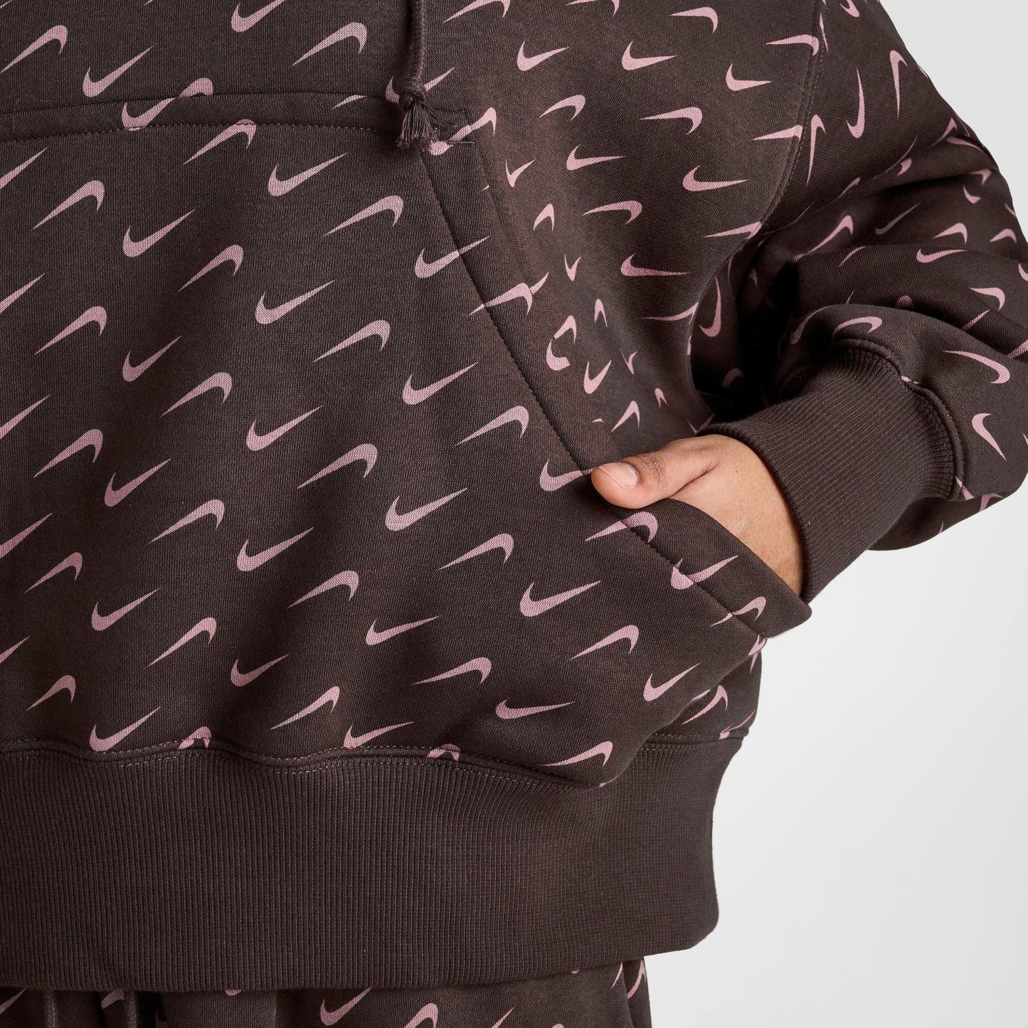 Freshen up your athleisure attire with the unbelievably cozy Women's Nike Sportswear Phoenix Fleece Over-Oversized All-over Print Pullover Hoodie. Crafted from cozy and warm midweight brushed fleece with a drop-shoulder design that delivers the roomiest oversized fit Nike has to offer, this premium pullover is a soon-to-be Swoosh staple. An all-over Swoosh print provides the finishing touch to your luxe laidback look.